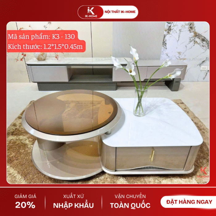 Bàn trà phòng khách IK Home – nơi sự tinh tế và tiện nghi hòa quyện.